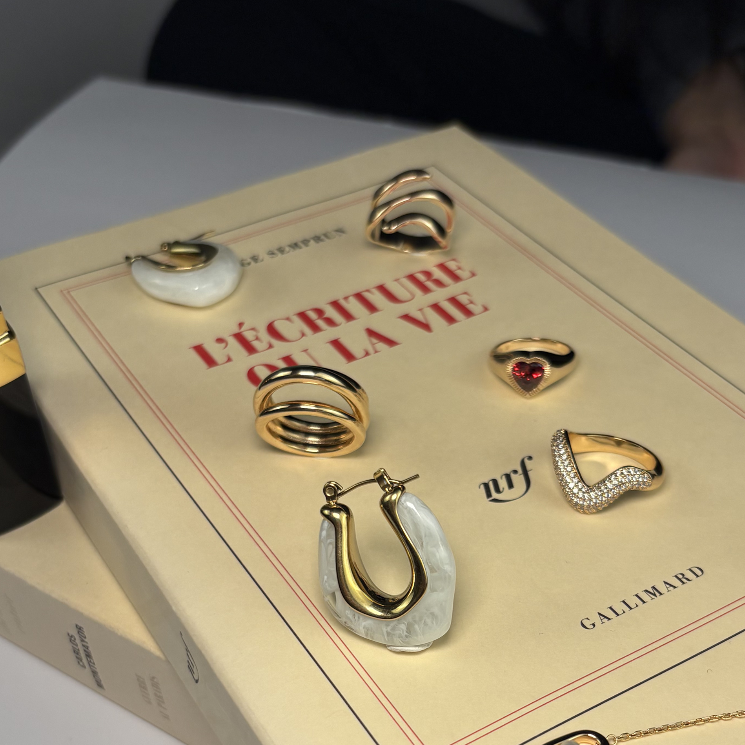 Chez Nouvel Amour, nous utilisons des matériaux de haute qualité, incluant du laiton plaqué or 3 microns et de l'argent sterling 925. Nos bijoux sont également ornés de pierres semi-précieuses comme la malachite, l'onyx, la turquoise et bien d'autres.