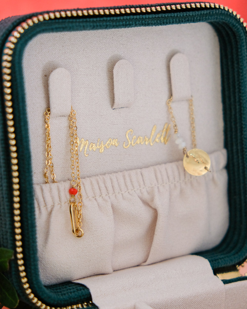 Chez Nouvel Amour, nous utilisons des matériaux de haute qualité, incluant du laiton plaqué or 3 microns et de l'argent sterling 925. Nos bijoux sont également ornés de pierres semi-précieuses comme la malachite, l'onyx, la turquoise et bien d'autres.