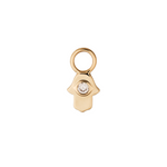 Ce charm de 5 mm en plaqué or 18 carats représente une main de Fatma, symbole de protection et de chance. Le zircon étincelant en son cœur illumine délicatement le bijou. Idéal pour sublimer un bracelet ou un collier avec une signification spirituelle et esthétique.