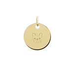 Esta medalla con un diámetro de 15 mm en plata chapada en oro de 3 micras o 925, disponible sin o con cadena, es una forma elegante de expresar el amor que sientes por tu mascota. Podrás personalizar la medalla con el grabado de un dibujo de tu fiel compañero.