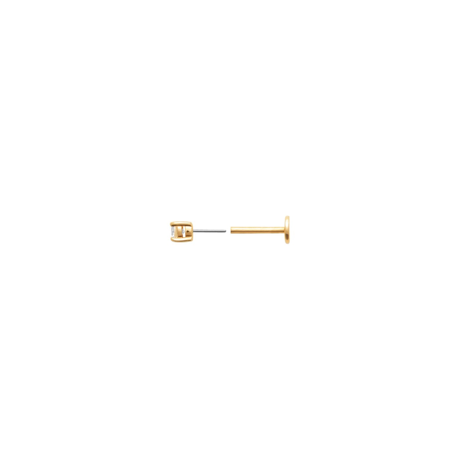 En plaqué or 18 carats et monté sur une tige en titane hypoallergénique, Prima allie élégance et confort. Résistant à l’eau, sans nickel, il est conçu pour être porté chaque jour sans compromis sur le style.