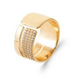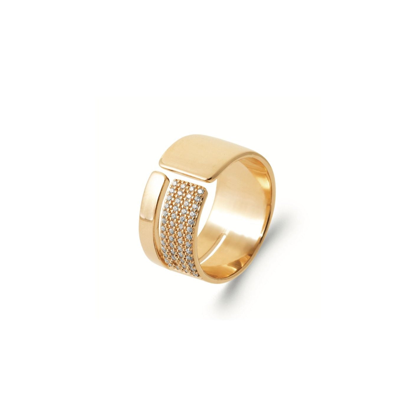 Cette bague en plaqué or 18 carats, sertie de zircons, combine finesse et éclat avec modernité. Son design lui confère une allure élégante et affirmée, idéale pour sublimer chaque geste avec élégance et caractère.