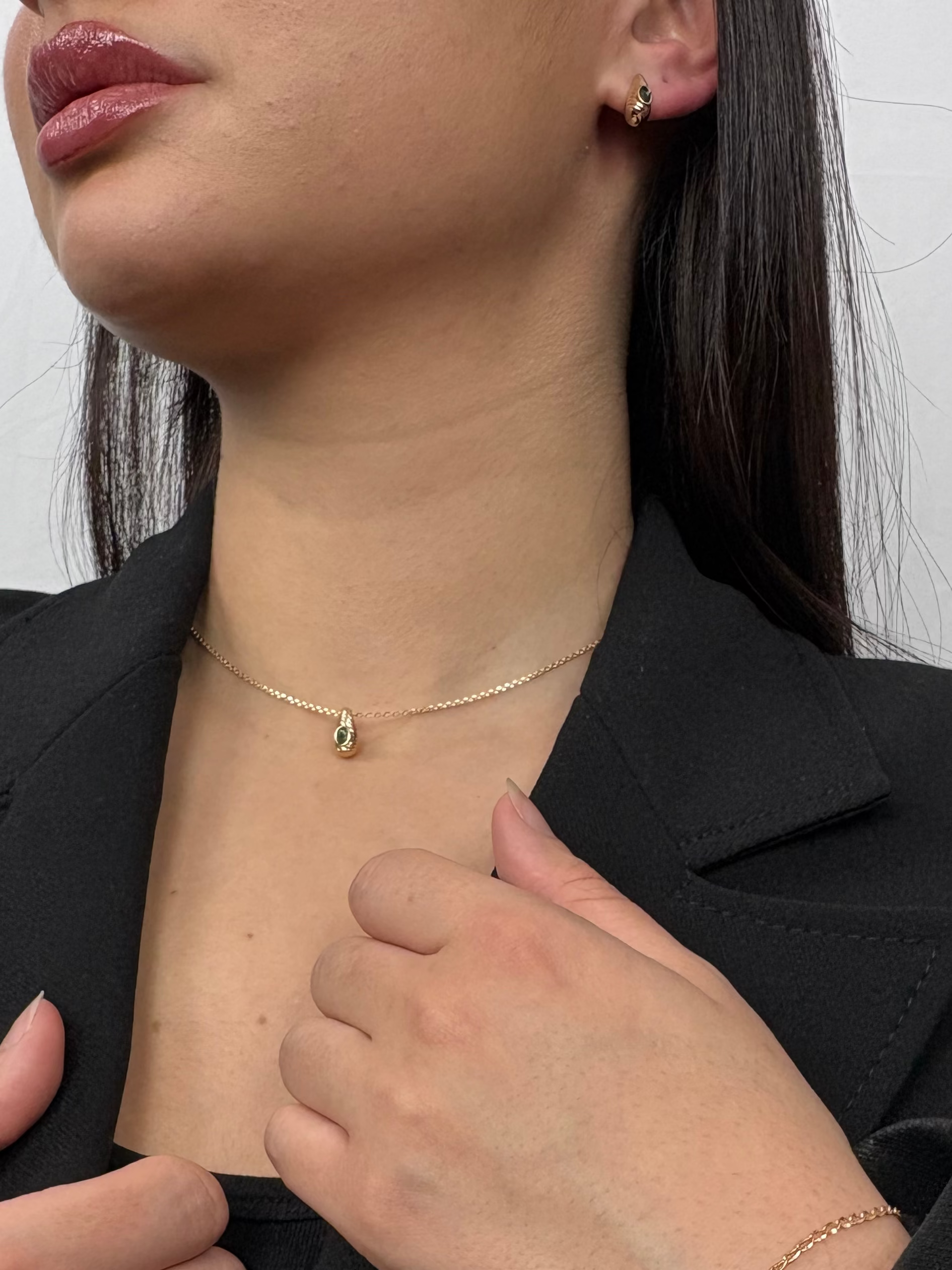 Les boucles d’oreillesSpencer se distinguent par leur association unique de lumière, de couleur et de texture. Le zircon vert apporte un éclat subtil, tandis que le doré texturé ajoute un relief raffiné, créant un bijou à la fois discret et captivant. C’est une pièce qui met en valeur le visage avec élégance, sans jamais être trop imposante.