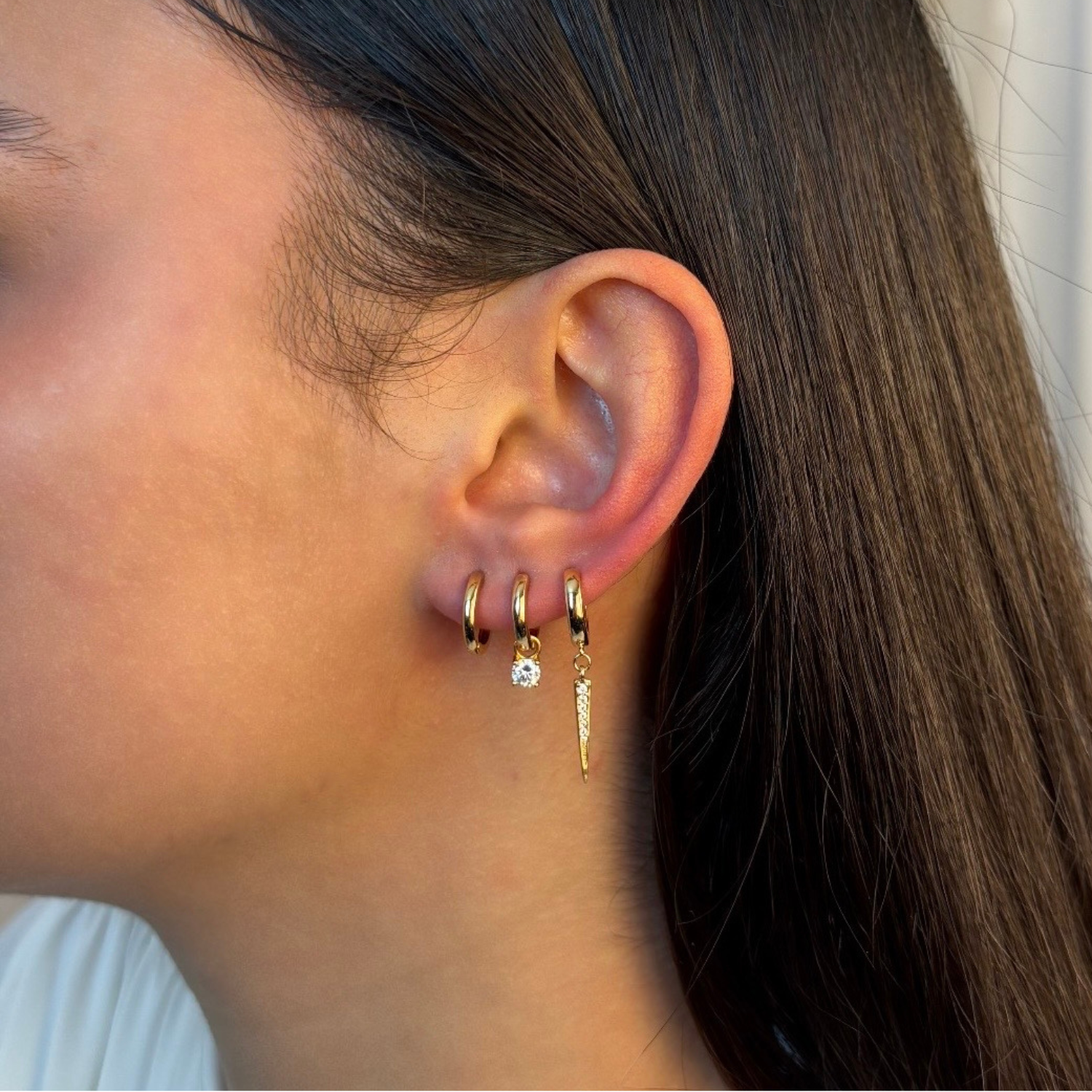 Le Charm Solitaire en plaqué or est orné d’un zircon blanc étincelant. Léger et raffiné, il apporte une touche de lumière à vos boucles d’oreilles, seul ou associé à d’autres charms.